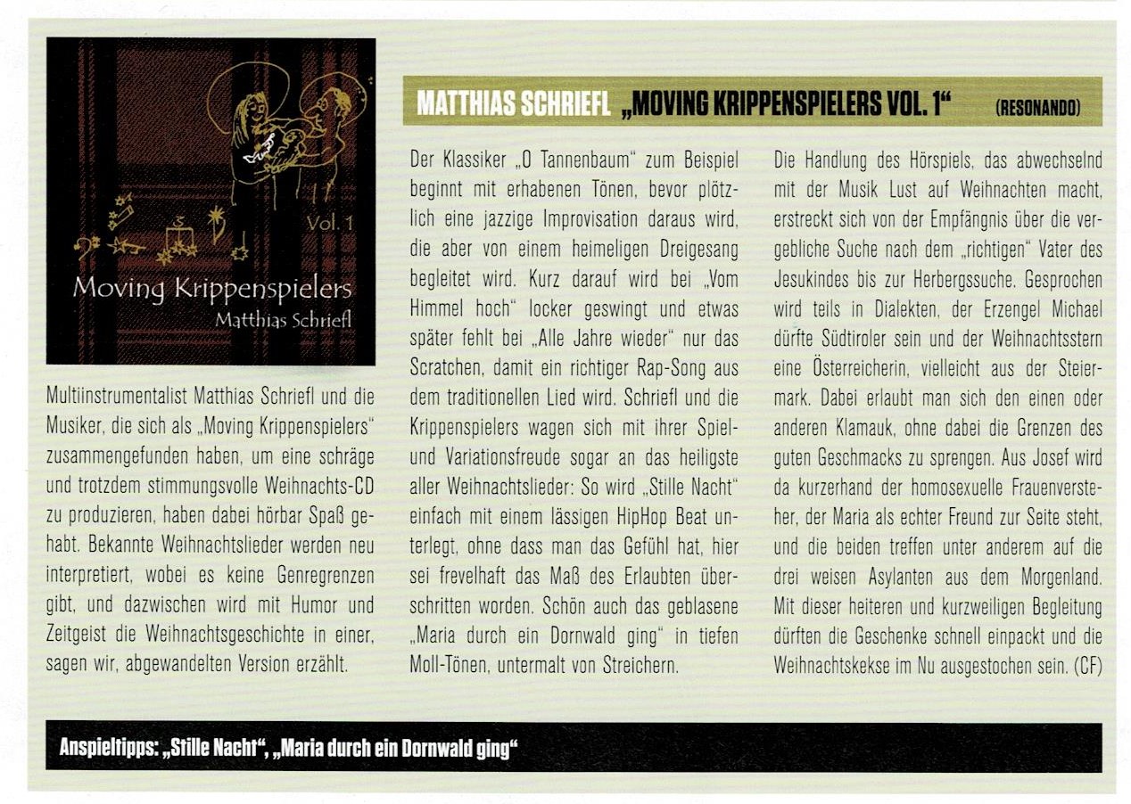"Lauter frohe Botschaften"... steht auf der ersten Seite des Booklets, und die froheste von allen ist wohl die, dass es dieses über Jahre hinweg mit Inbrunst praktizierte, durchgeknallte Krippenspiel aus dem für hochmusikalischen Nonsens bürgenden Hause Schriefl jetzt auch für die Allgemeinheit gibt ... mehr