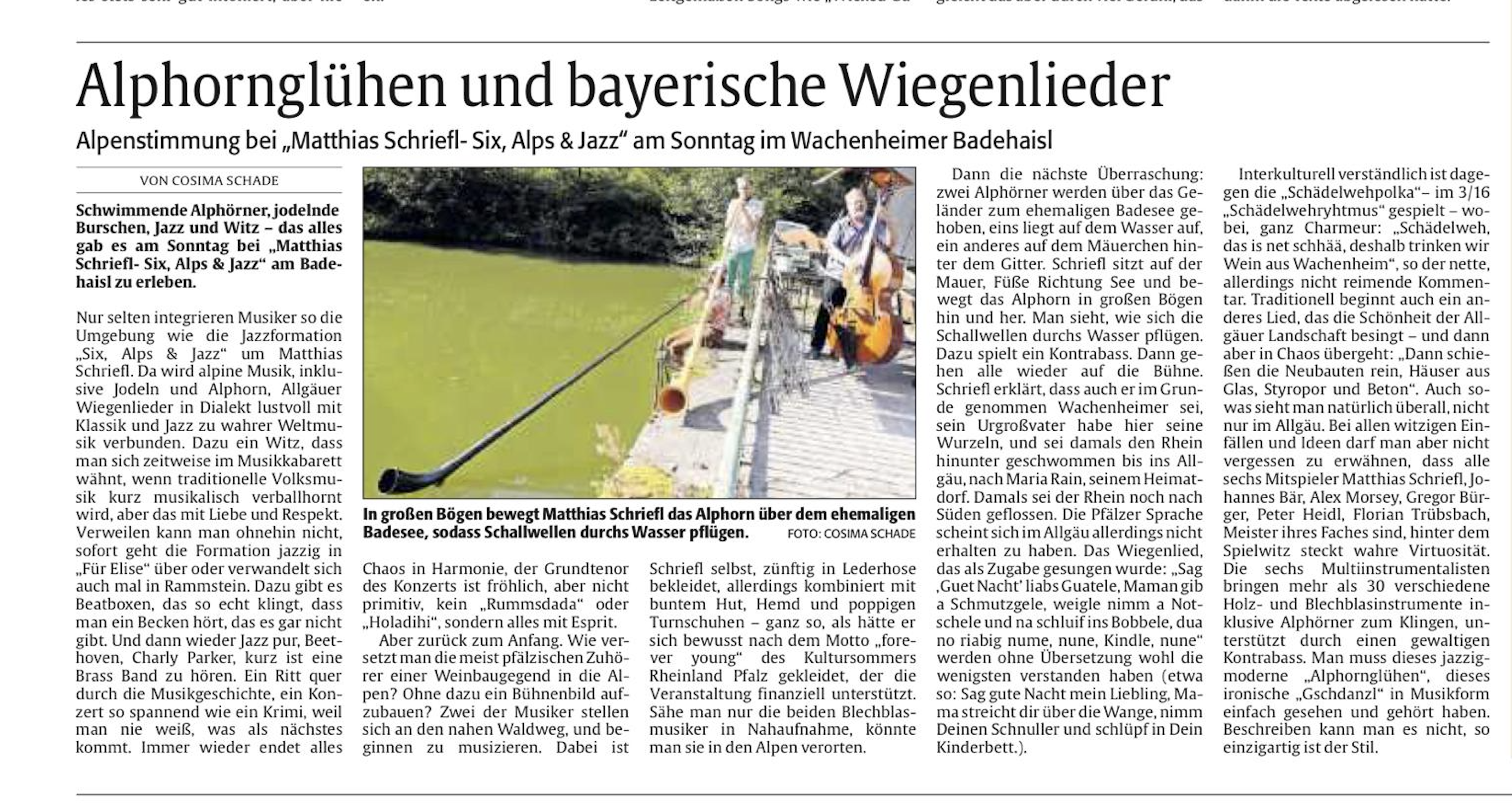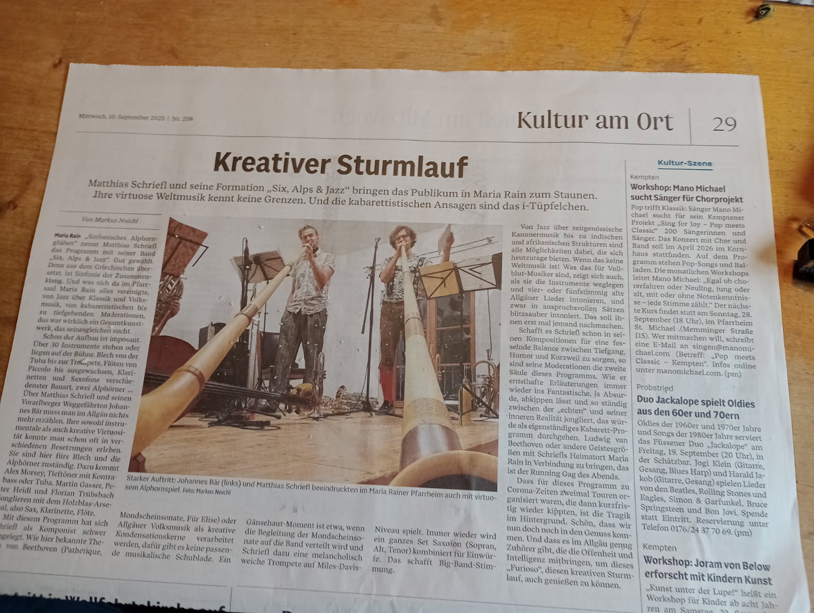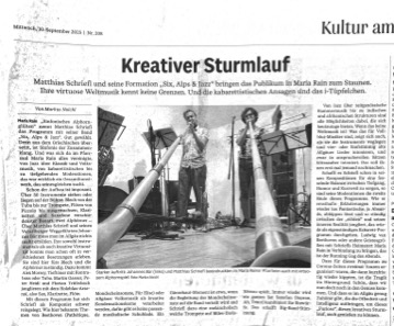 10.09.2025 Six, Alps & Jazz-Kritken für 8. und 9. September 25 Aus der "DIE RHEINPFALZ" vom 8.9.25 und der Allgäuer Zeitung vom 10.9.25: